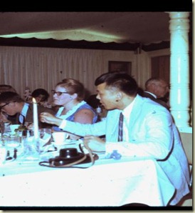 When you come home after seven years for a brief visit, everyone related to you and your family would like to meet with you and your new family. There was just a very limited way to do that. Most of the time we would end up meeting together in a restaurant for lunch or dinner. Father was still working at National Taiwan University and some people there invited us to meet with them, even though we did not have much of a relationship. However, Father thought we should accept, just to be polite. That was the Chinese way! As the result of this situation, Janice and I ate out most of our lunches and dinners at restaurants during the three months we were in Taiwan. Of course, we ate at the homes of our relatives too, but that was not usual, since at that time most homes did not have air conditioners, and restaurants were all equipped with the necessary machines. So I have just a few pictures to show you here at relatives homes: