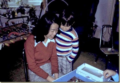 Christina, my sister, was still in Graduate School at the University of Kentucky Medical School in 1976. Her winter break was not too long after Thanksgiving. As usual, she came to our house for the break. She got the chance to play with our two kids and they certainly got very close to her. She went to their school with them to play on their playground. And she played many games with them, such as putting puzzles together and solving Master Mind. I have a few pictures to document some of these events, and they also show how young Christina was at the time!