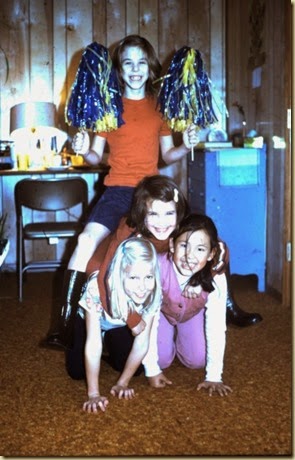 From a very young age, Margaret was always interested in the chance to be one of the school cheer leaders when she got to junior high. This was an opportunity not to be missed. Therefore, Margaret, even in third grade, organized a practice party for all her friends who wanted the opportunity to practice together. We used our front room for this purpose. We not only watched them practicing, but also took some pictures to remember the occasion. It was serious business! Take a look and see if you agree!